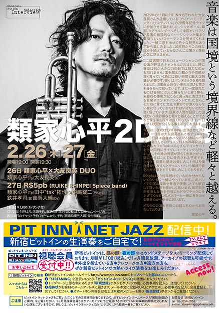 今回は二夜続けてPIT INNに出演させて頂きます。一日目は大友良英さんとのデュエットで、二日目は自身のバンドRS5pbになります。大友さんとのデュエットは2024年に池袋にあるカフェ「kakululu」さんでコンサートを行い同時にライヴレコーディングも行いました。その時の音源が恐らく出来上がって間に合えばこの日に発売される予定です。ライヴも音源も是非お楽しみに!何より僕自身が大友さんとデュエットという編成で音を出せる事をとても楽しみにしております。